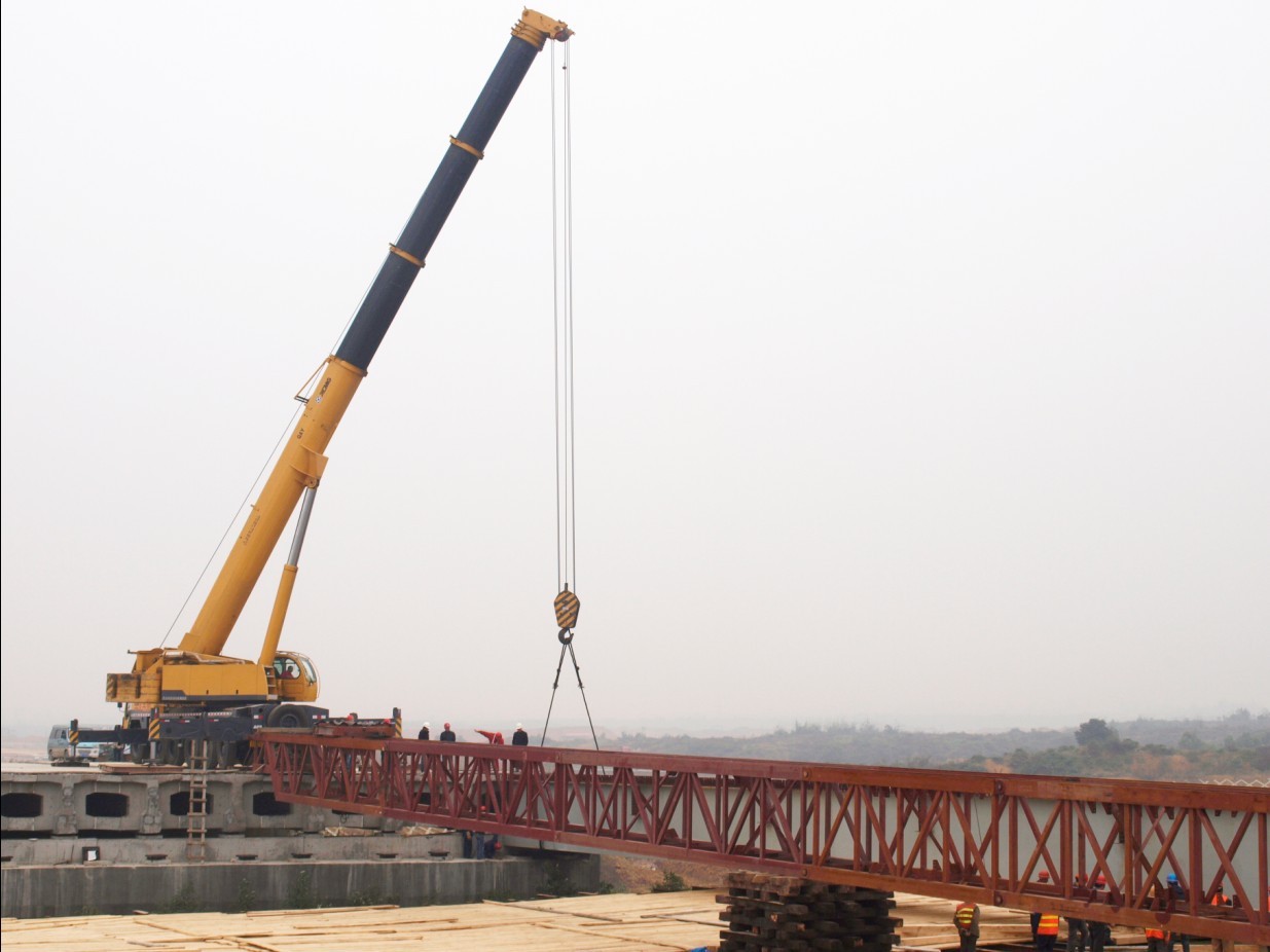 跨越成雅高速公路的成都雙華路(牧華路)遷建成雅互通52米跨度鋼箱橋梁,該工程位于成都雙流縣有著“千年麻羊鄉(xiāng)、現(xiàn)代工業(yè)鎮(zhèn)”的黃甲鎮(zhèn)。此工程鋼結(jié)構(gòu)專業(yè)工程量達到2000多噸。其中鋼箱梁跨度52米,寬度5.4米,高度2.4米,單個構(gòu)件重量達162噸。